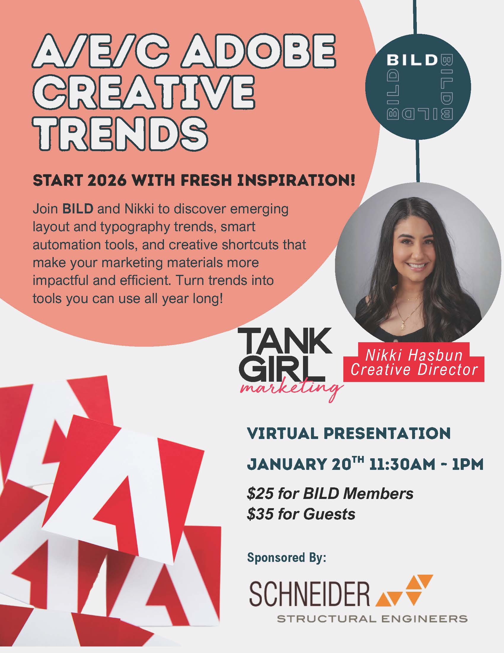 Join BILD on January 20, 2026 for a 90-minute virtual training for A/E/C Marketers, focused on the latest updates in Adobe including InDesign and Adobe Express.